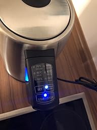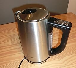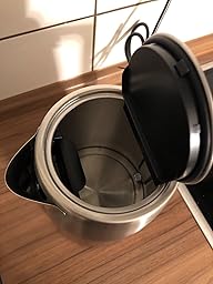 Da unser alter Wasserkocher leider kaputt gegangen ist und wir dringend einen neuen benötigten, haben wir uns auf die Suche bei Amazon gemacht um schnell einen neuen zu bestellen. Da wir ein Kleinkind im Haushalt haben war es uns wichtig dass er einstellbar Temperaturen hat. Somit ist es direkt möglich die Flasche für das Kind in der richtigen Temperatur bereitzustellen. Optisch ist der Wasserkocher sehr Hochwertig verarbeitet. Das Wasser wird nach meiner Meinung sehr schnell auf die gewünschte Temperatur erhitzt. Am Anfang war ich sehr skeptisch wegen der Edelstahloberfläche. Jedoch muss ich sagen dass sie nicht so anfällig ist wie ich dachte. Er lässt sich leicht reinigen da hochwertig verarbeitet. Das Wasser wird nach meiner Meinung sehr schnell auf die gewünschte Temperatur erhitzt. Am Anfang war ich sehr skeptisch wegen der Edelstahloberfläche. Jedoch muss ich sagen dass sie nicht so anfällig ist wie ich dachte. Er lässt sich leicht reinigen, da er im Inneren keine offen liegen der Heizspirale hat. Ich hoffe dass er recht lange hält und würde ihn im jetzigen Moment jeden weiter empfehlen.