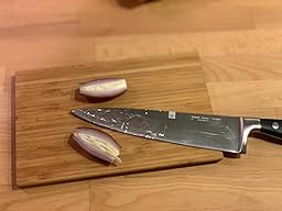 - SICHERHEIT & BALANCE- Das Kochmesser ist am Kropf gut ausbalanciert für ermüdungsfreies Arbeiten. Der Fingerschutz verhindert das Abrutschen und sorgt für eine sichere Schnittführung.