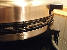 Am Eisenrand ist innen eine Überlauffläche vorhanden, wenn man zu viel Teig verwendet. Läuft es trotzdem über, in unserem Fall das Fett aus dem Käse des WMF-Käsewaffelrezeptes, läuft das Fett außen zwischen dem Kunststoffring und dem Cromargan-Blech ins Gehäuse (siehe Foto), wo sich ein kleiner Spalt findet. Was passiert auf Dauer â¦?
