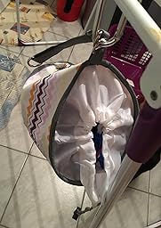 Durch die Größe ist es kein Problem den Beutel am Rahmen eines durchschnittlichen Klappwäscheständers zu befestigen aber es ist auch ein kleines Bändchen dabei mit dem sogar die dicken Arme der Wäschespinne kein Problem darstellen – der Beutel kann immer sicher befestigt werden. Der “infreecs” Beutel versagt hier in beiden Fällen: der Karabiner ist zu klein und ein zusätzliches Bändchen war auch nicht dabei.
