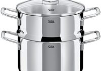 Inhalt: 1x Fleischtopf mit Deckel Ø 16 cm, 1x Fleischtopf mit Deckel Ø 20 cm, 1x Fleischtopf mit Deckel Ø 24, 1x Stielkasserolle Ø 16 cm – Artikelnummer: 2109300502Material: Edelstahl rostfrei 18/10 – spülmaschinengeeignet, pflegeleicht, backofengeeignet, geschmacksneutral und säurefest.Für alle Herdarten geeignet – auch für Induktion. SiliTherm-Allherdboden: Bodenkonstruktion mit gleichmäßiger Wärmeverteilung und langer Wärmespeicherung für… Read More »