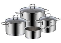Silit Alicante Topfset 4-teilig, Kochtopf, Fleischtopf, Stielkasserolle, Edelstahl rostfrei 18/10 poliert, Glasdeckel, Induktion, spülmaschinengeeignet