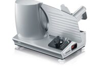 Severin 3915 Allesschneider silber Der ideale Küchenhelfer: Praktischer Allesschneider zum Schneiden von Brot, Käse, Fleisch und anderen Lebensmitteln, Inklusive Schinkenmesser Leichtgängig und gleichmäßig: Stufenlose Einstellung der Schnittstärke von 0 bis 15mm, Wechselbare, rostfreie Edelstahlmesser, Optimale Ergebnisse dank Schrägstellung des Schneidgutes, Praktischer Restebehälter Sichere Bedienung: Gleitschlitten mit Edelstahlabdeckung und Fingerschutz, Optimale Standfestigung durch robuste Metallverarbeitung und… Read More »