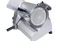 Product Description Feature CE-Zulassung Modernes Design für schnelles und müheloses Schneiden. 25-cm-Messer aus Edelstahl zum Schneiden von Lebensmitteln. Hocheffizient und langlebig. Zwei eingebaute Wetzsteine zum sicheren und bequemen Schärfen des Messers. Bedientasten zur bequemen Steuerung des beidseitigen Messerschärfens durch die Wetzsteine. Einstellknopf zum Verstellen der Anschlagplatte. Anschlagplatte aus Edelstahl und transparenter Restehalter verhindern beim Schneiden… Read More »