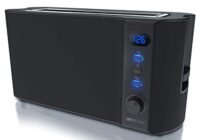 Arendo – Toaster Langschlitz 2 Scheiben – Defrost Funktion – 1000W – Doppelwandgehäuse – Integrierter Brötchenaufsatz – Bräunungsgrade 1-6 – Display mit Restzeitanzeige – Edelstahl schwarz matt