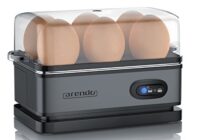 Arendo – Eierkocher Edelstahl mit Warmhaltefunktion | Kipp-Funktionsschalter mit Indikationsleuchte | frei wählbarer Härtegrad | rostfreier gebürsteter Edelstahl | in Cool Grey