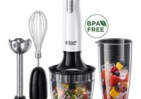 Horizon 3 in 1 Stabmixer 2 Geschwindigkeitsstufen, ergonomischer Griff Abnehmbarer Edelstahl-Mixfuß mit 2-flügeligem Edelstahlmesser Oberfläche aus hochwertigem weißen Kunststoff mit schwarzen Applikationen Spülmaschinengeeignetes Zubehör: Messbecher (700 ml Fassungsvermögen), Zerkleinerer (500 ml Fassungsvermögen) mit multifunktionalem Deckel/Anti-Rutsch-Fuß, Schneebesen aus Edelstahl 500 Watt, Alle Teile, die mit Lebensmitteln in Berührung kommen, sind BPA-frei Russell Hobbs Stabmixer 3-in-1 Horizon… Read More »