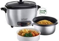 700W – Capacit� : 5L – Arret automatique – Maintien au chaud – Panier vapeur – Cuve anti-adh�sive amovible – Bouton ON/OFF – Inclus : Spatule + Verre – Garantie : 2 ans Herausnehmbarer, antihaftbeschichteter Gartopf 2,5 l Fassungsvermögen für das Kochen von bis zu 14 Tassen Reis (entspricht 14 kleinen Portionen), 1000 Watt Automatischer… Read More »
