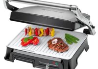 Clatronic Kontaktgrill KG 3571 Kontaktgrill für beidseitiges, fettfreies Grillen, Barbecue-Grill – 180° Öffnung ermöglicht das Grillen auf großer Fläche Fettablaufrinne und Auffangschale (Schale zur leichten Reinigung entnehmbar), 2000 Watt, Edelstahlgehäuse Stufenlos regelbarer Thermostat, Kurze Garzeiten, Kratzfeste, keramikbeschichtete Grillplatten mit extra tiefen Rillen für ein intensives Grillmuster und optimalen Fettabfluss, Großer, wärmeisolierter Griff 2 Kontrollleuchten für… Read More »
