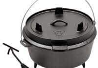 Dutch Oven Topf, gusseiserner Kochtopf Der DO508 Dutch Oven Topf aus Gusseisen wird komplett mit passendem Deckel und praktischem Deckelheber geliefert. Die drei fest montierten Beine bieten stabilen Stand – ein separater Topfständer wird nicht benötigt. Der Deckel mit erhöhtem Rand bietet reichlich Platz für Kohlen, Glut oder Briketts. Der 26 cm lange Deckelheber ermöglicht… Read More »